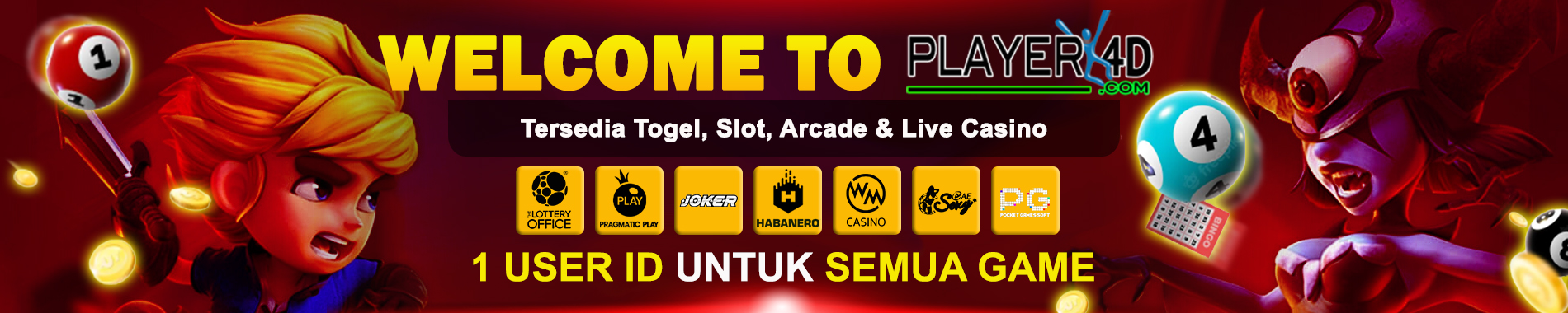 Selamat Datang di PLAYER4D - Situs Terbaik Se-Indonesia , Hanya dengan 1 User ID Bisa Bermain Semua Permainan Terbaik